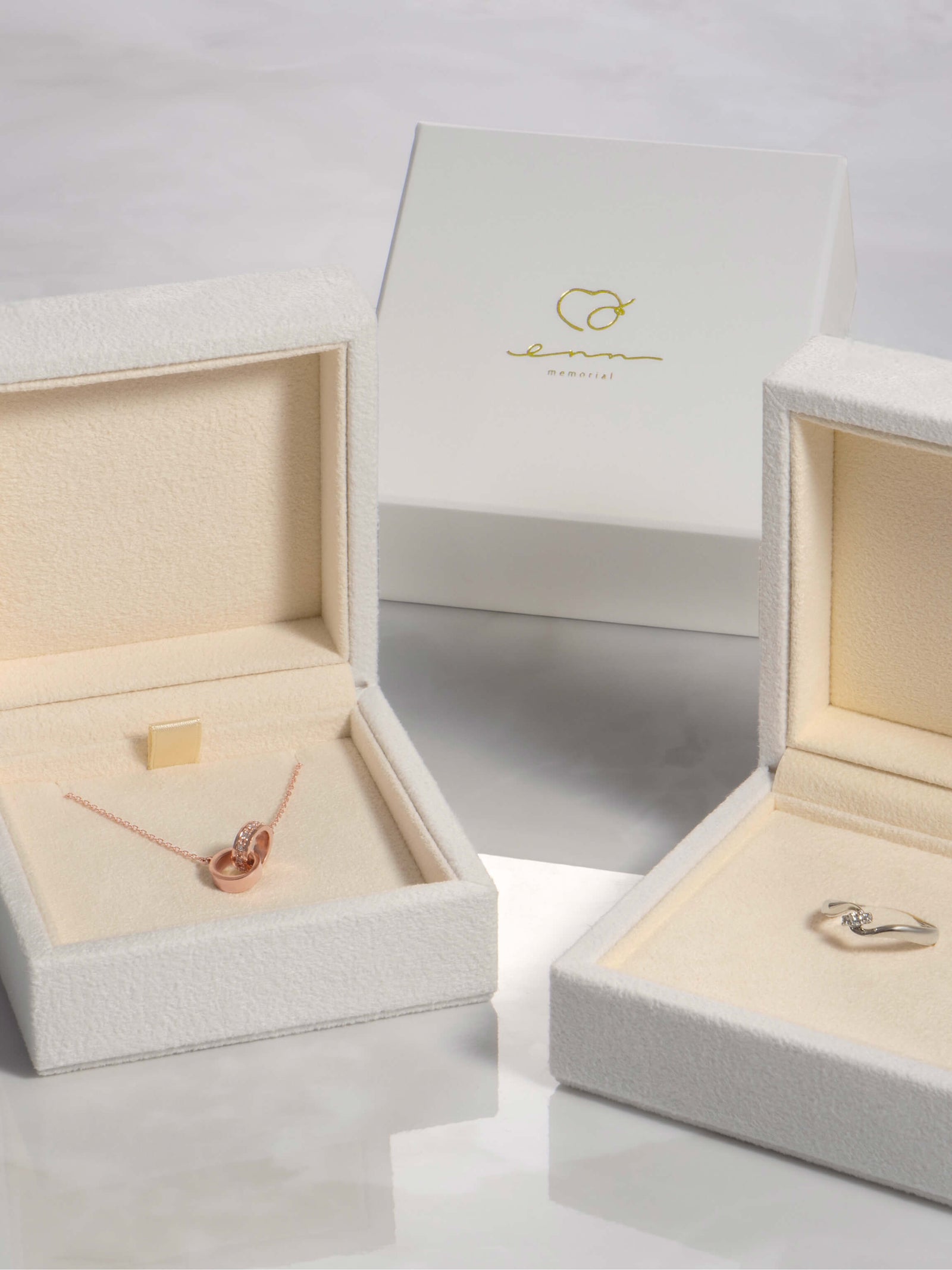 ご遺骨を封入したジュエリーなど、日常に溶け込む新しい手元供養のかたちをお届けしています。